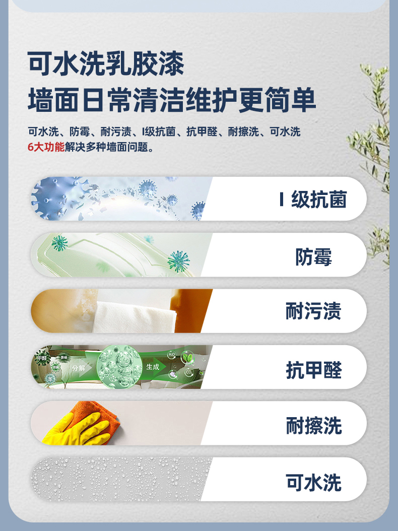 產(chǎn)品描述:抗菌防霉耐污可水洗乳膠漆